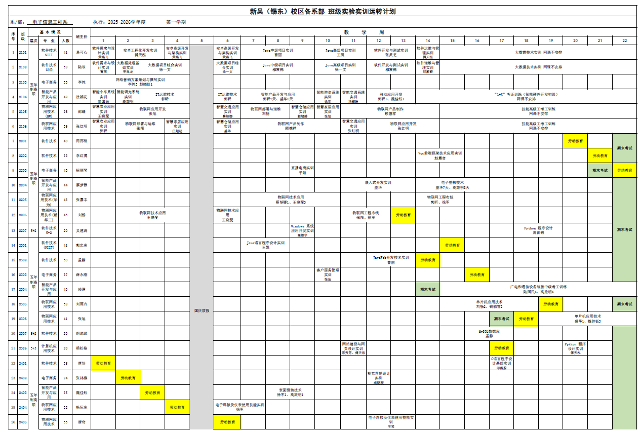 【腾讯文档】2025-2026-1学期新吴校区各系部班级实验实训运转计划-电信系