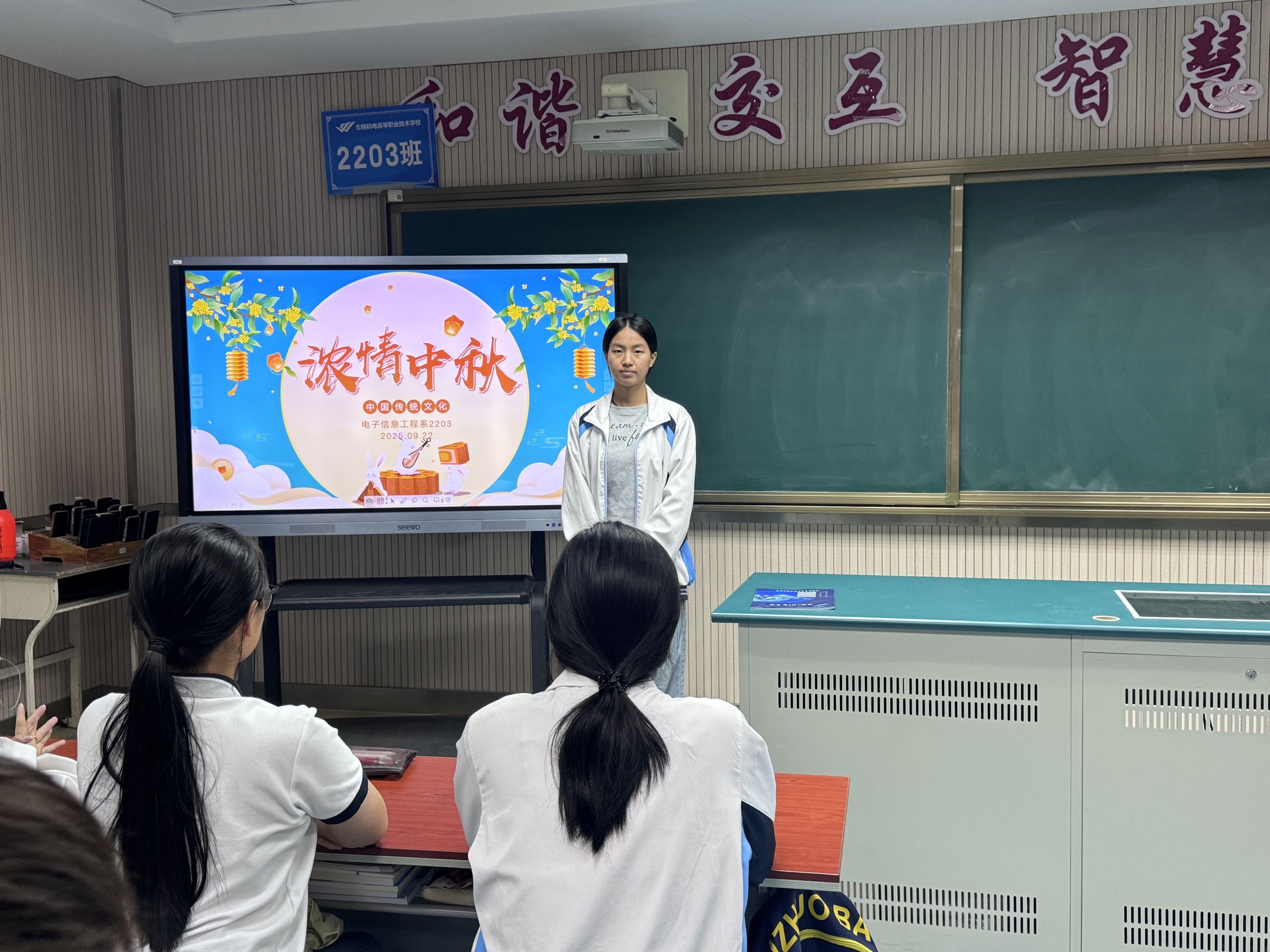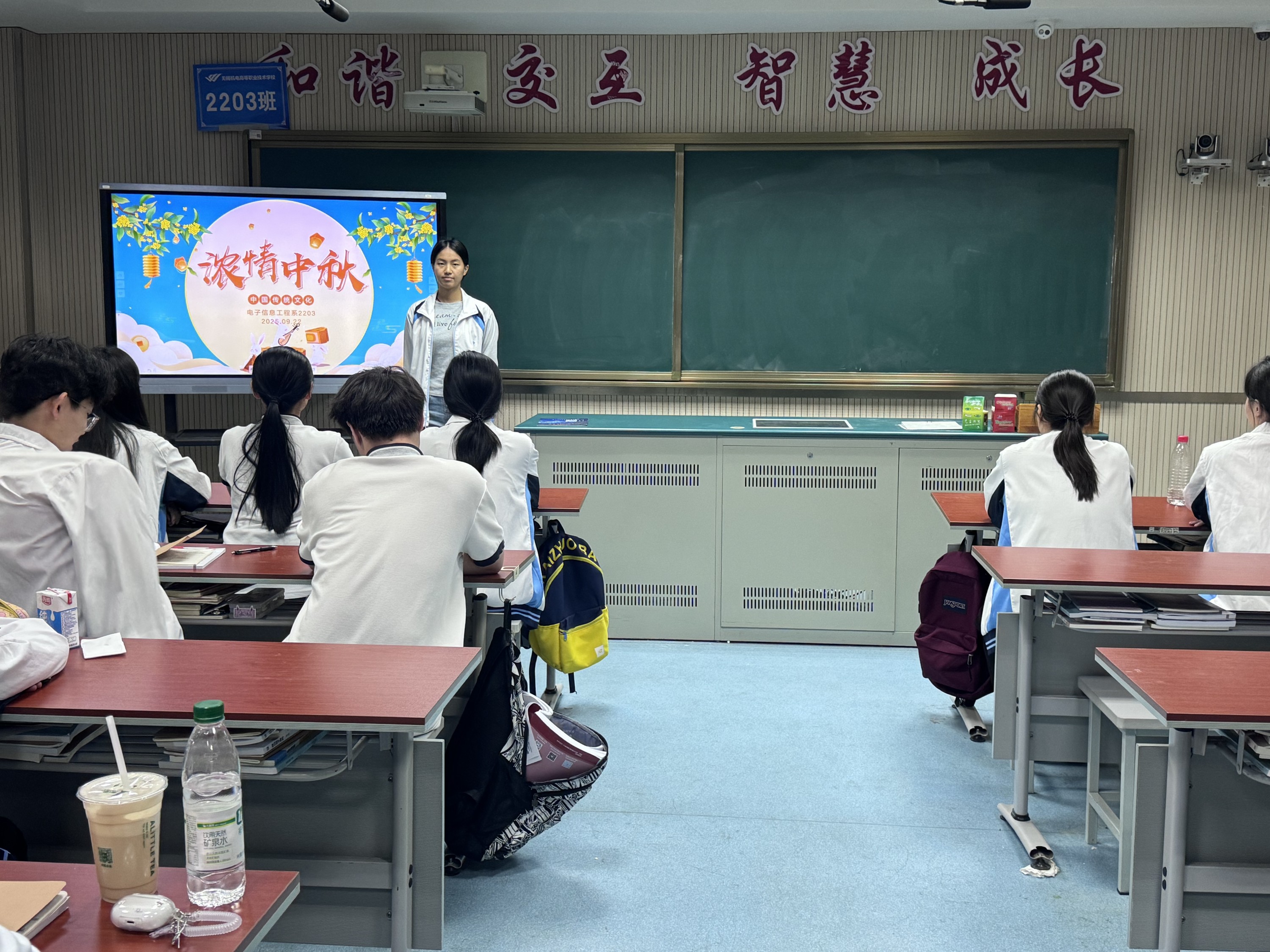 为弘扬中华传统文化,让同学们深入了解中秋节的文化内涵,2025年9月22日,2203班举办了以“浓情中秋,传承文化”为主题的班会活动。班会围绕中秋节起源、习俗、美食、诗词展开,让同学从多方面了解中秋文化。 此次班会,通过对中秋节起源、习俗、美食、诗词的全方位介绍,不仅让同学们深入了解了中秋文化,更增强了大家对中华传统文化的认同感与自豪感,在传承文化的同时,也让这个中秋充满了别样的意义。 攥稿:徐子晗 摄影:徐子晗